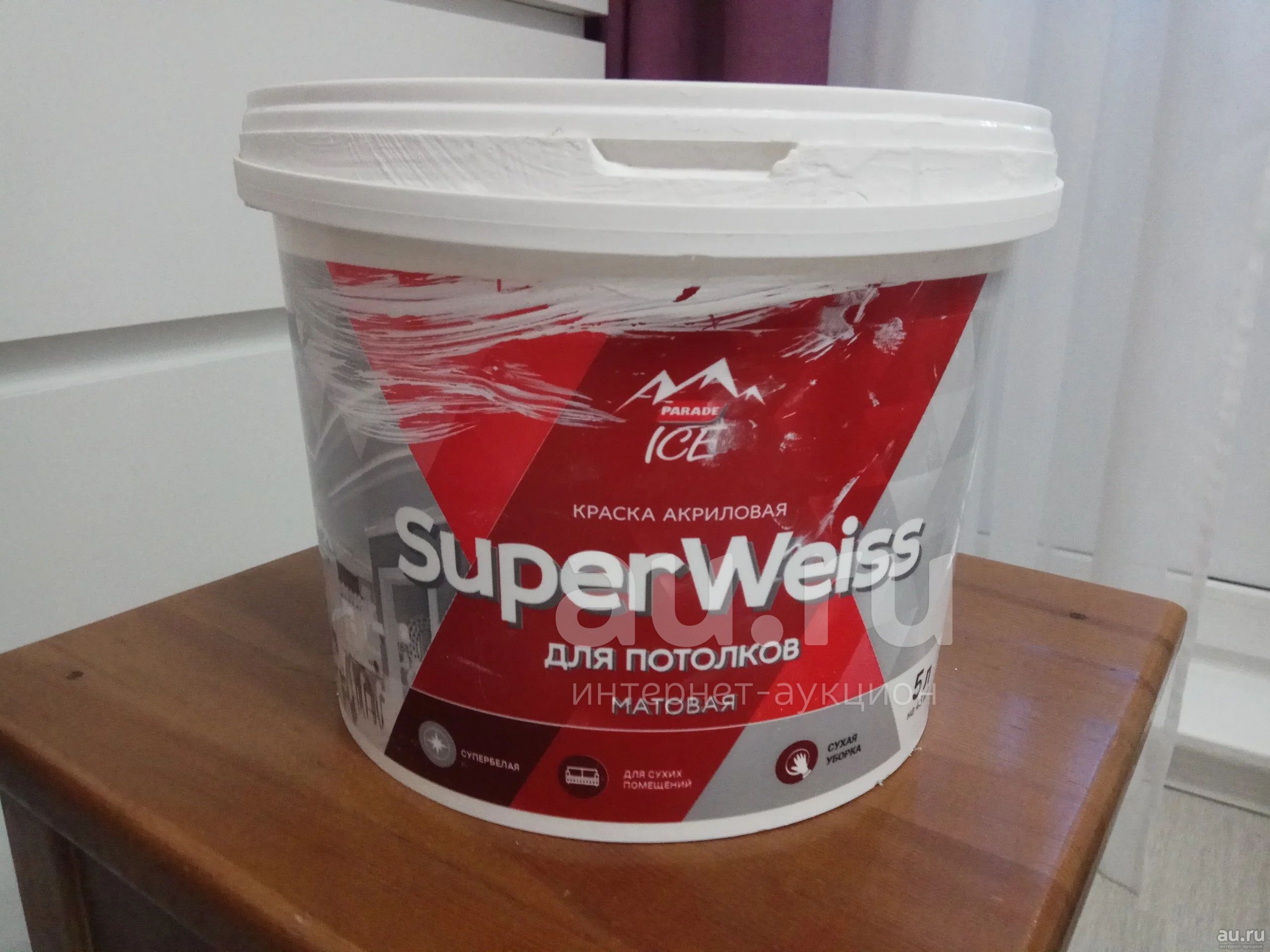 Краска акриловая Super Weiss для потолков, матовая, супербелая, для сухих помещений. Приобретена в Леруа Мерлен 2 недели назад за 868 р. Из 7,8 кг осталось 5,2 кг. Продаю за ненадобностью.