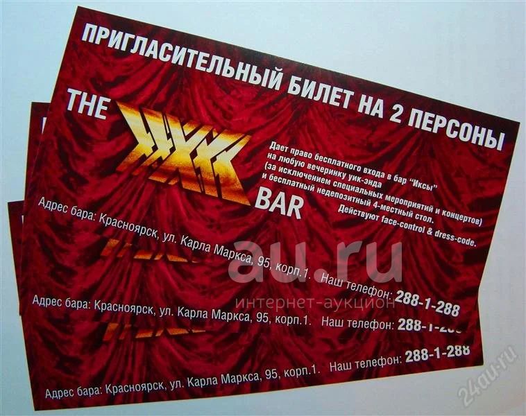 Пригласительный билет на 2 в бар "ИКСЫ на Маркса" + 4-местный столик