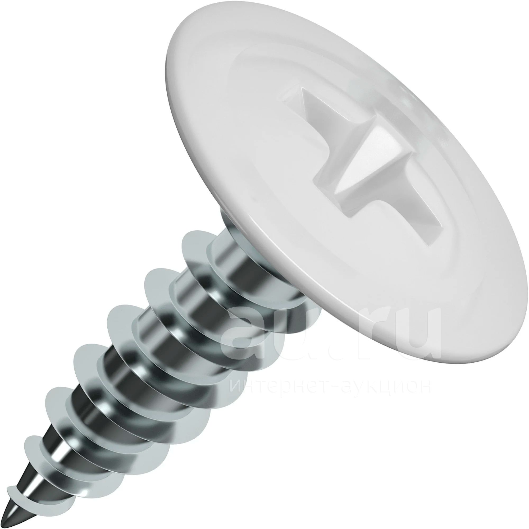 Широкая шляпка белого цвета (подбирается под цвет металлопрофиля) оснащена крестообразным шлицем для отверток и бит PH2.