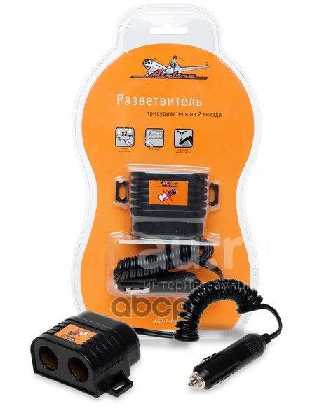 Прикуриватель-разветвитель 15 ампер на 2 гнезда с витым шнуром AIRLINE арт. ASP15A10