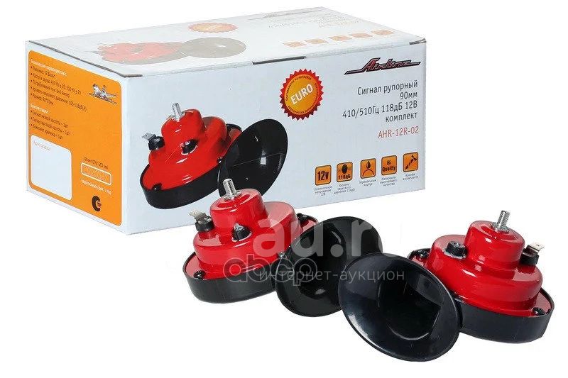 Сигнал звуковой рупорный 90мм 410/510гц 118дб 12в low/high комплект AIRLINE арт. AHR12R02