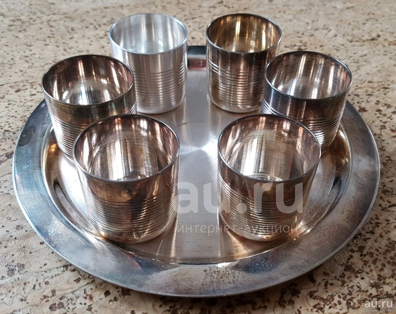 Набор рюмок 6 шт. на подносе. Мельхиор. СССР.