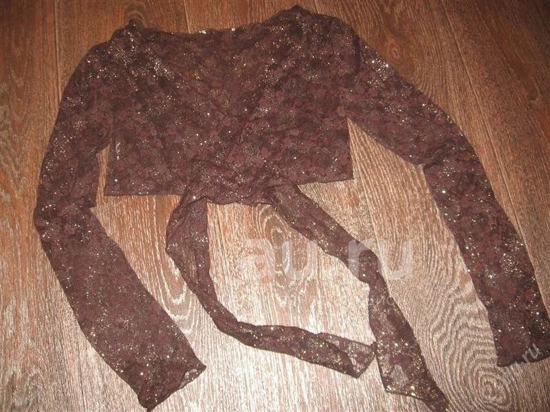 Очень красивое болеро,коричневого цвета с золотыми блесками. В сеточку,завязывается сзади.