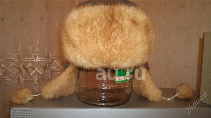 комбинированная норковая шапка, верх и зад - стриженая норка (коричневая), ушки и козырек - обычная норка (рыжая)