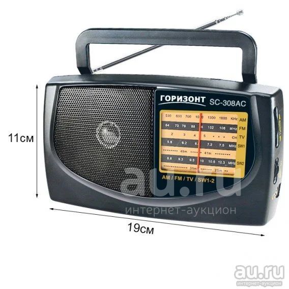 Компактность формы и лаконичность в оформлении этого радиоприёмника Горизонт SC-308AC не оставят радиолюбителя равнодушным! Он прекрасно подойдёт для активного отдыха, дома или дачи. Это компактное портативное устройство подарит Вам возможность прослушивания любимых музыкальных композиций в течение длительного времени и в любом месте. Более того, Вы всегда будете в курсе последних новостей. Характеристики. Тип радиоприёмника: переносной Тип тюнера: аналоговый Цвет: чёрный Габаритные размеры (ВхШхГ): компактный 10,5 х 19,7 х 6,2 см Вес: 415 гр. (вес без батареек) Материал корпуса: пластмасса Длина сетевого шнура: 150 см Питание: от сети 220В или от двух батареек Отличительные особенности: диапазон тюнера: AM/FM/TV/SW1-2 (пятиволновый, приём на телевизионных каналах) Телескопическая антенна: да Переключатель диапазонов: да Большой указатель частот: да