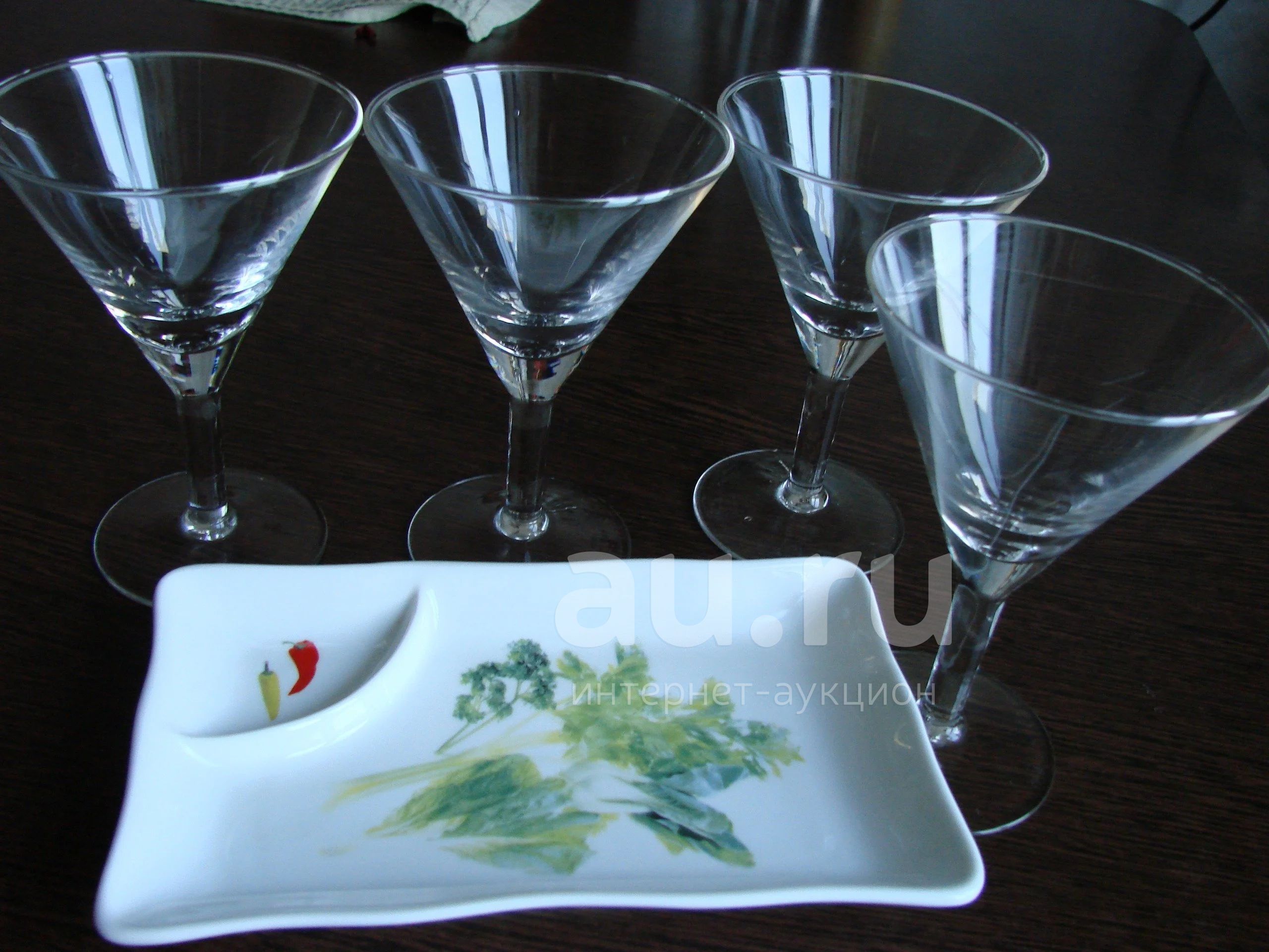 Бокалы для мартини 4шт. + тарелка для оливок и маслин (новая)
