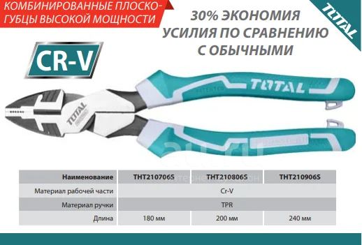 Комбинированные плоскогубцы высокопрочные 180 мм TOTAL
