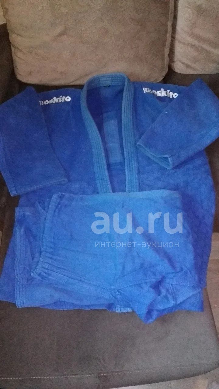 Кимоно для занятий борьбой дзюдо - Moskito. Синее, жёсткое и плотное, без порывов. Б/у.