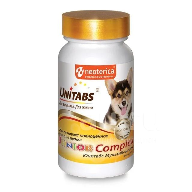 Витамины Unitabs Junior Complex (Юнитабс Юниор) c B9 для щенков, 100таб