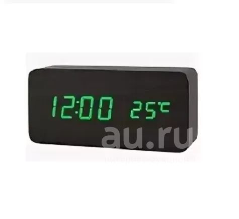Часы настольные VST-862-4. Цифры хорошо видны на расстоянии десяти метров, еще показывают. Подходят для пользования: дома или в офисных помещениях. Светодиодные электронные часы удачно вписываются практически в любой интерьер, идеально гармонируют с деревянной мебелью. Если отключают электричество, время часов и все настройки не сбиваются благодаря дополнительному элементу питания, и после восстановления питания часы снова показывают правильное время. Характеристики. Тип: електронные часы Вид: настольные с подсветкой Материал корпуса: пластик Будильник Форма: прямоугольная Подсветка: зеленая Питание от 220V или батарейки 3хААА Габариты, см : 15 x 7 x 4