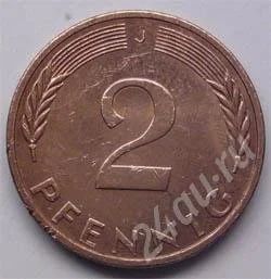 Западная Германия. ФРГ. 2 пфенниг 1974г.