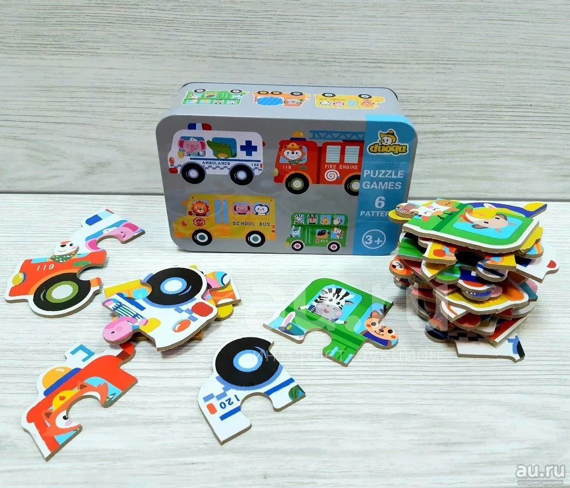 Пазлы для самых маленьких, выполнены из прочного плотного материала, и упакованы в красивую коробочку. Пазлы, которые приятно держать в руках. Вам малыш сможет собрать разные виды транспорта или животных.