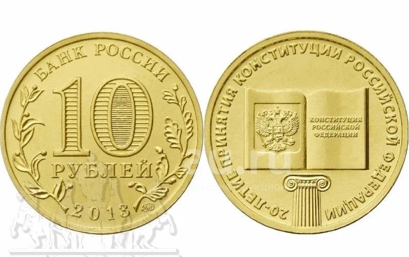 Россия ГВС 10 рублей 2013 года 20 лет Конституции. без оборота
