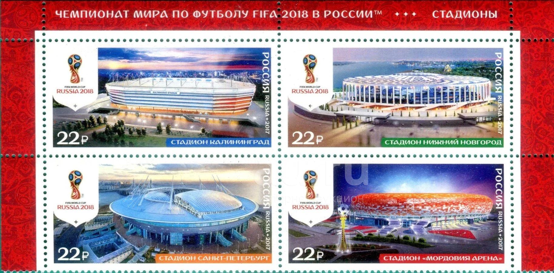 2017. № 2248-2251. Чемпионат мира по футболу FIFA 2018 в России™. Стадионы. Калининград, Нижний Новгород, Санкт-Петербург, Саранск