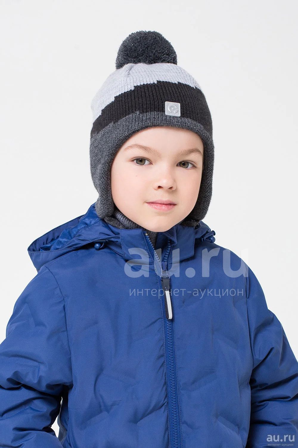 - Шапка для мальчика, вязаная из полушерстяной пряжи, с узором. Подкладка из мягкого флиса. На макушке помпон из пряжи. Спереди предусмотрена светоотражающая нашивка. Цельнокроеные ушки с завязками защищают от холода и ветра.