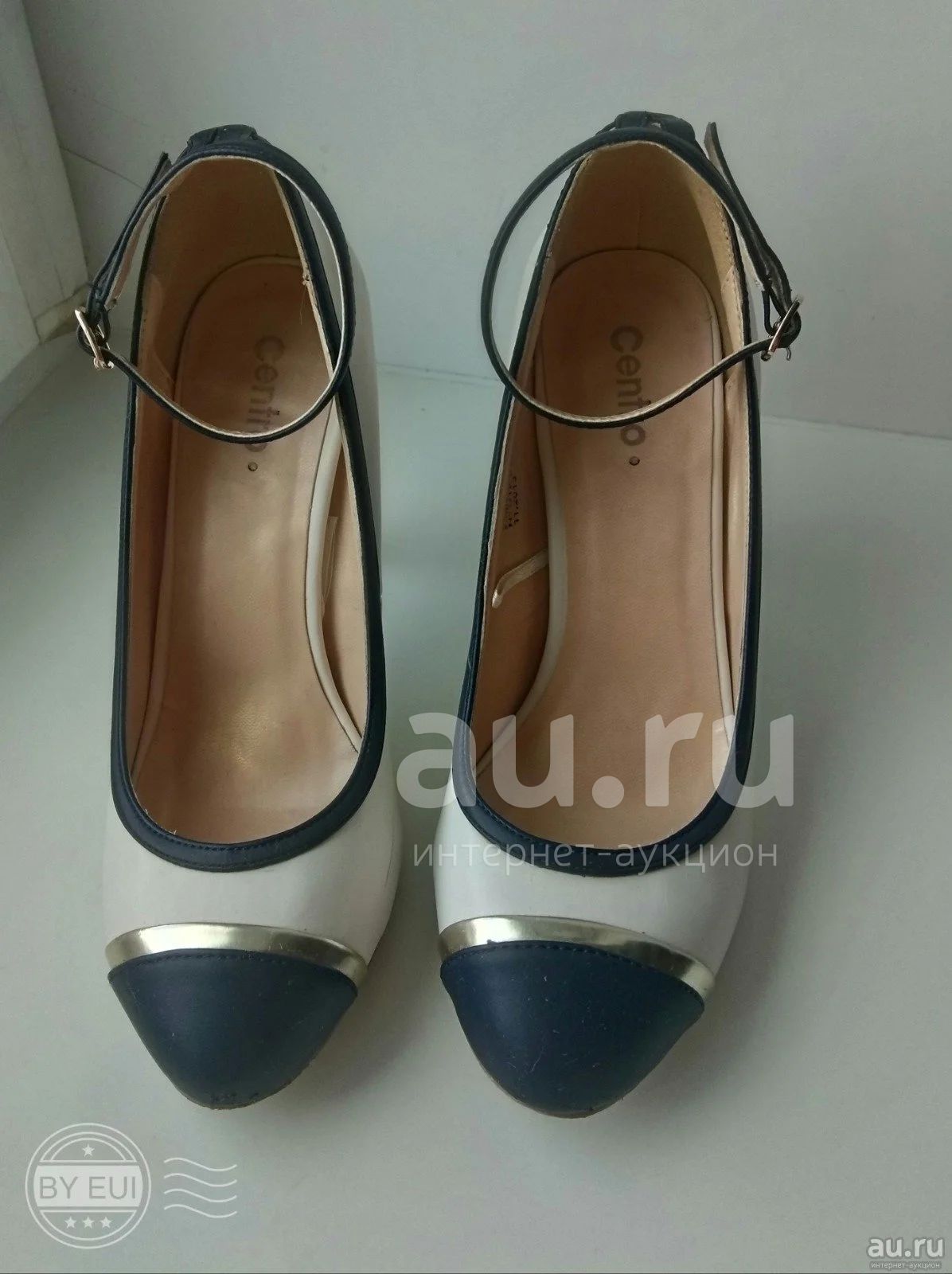 Туфли комбинированные бело-синие, р.37