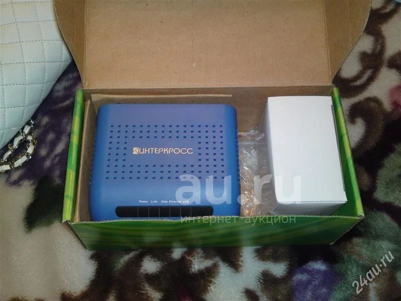 Комплект: Коробка, Блок питания, Сплиттер, 2 телеф. кабеля, CD, сетевой кабель ethernet, Документация.