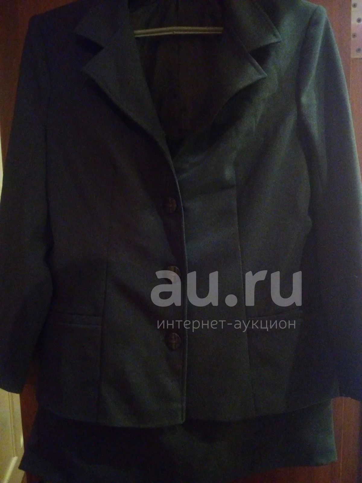 Костюм на подкладе, хорошее качество ткани. Шился на заказ. Цвет темно-зеленый.