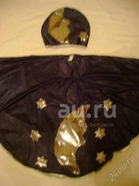 Карнавальный костюм Ночка, можно назвать и месяц, состоит из накидки + шапка. Шапка сзади имеет резинку и поэтому растягиваеися от 46см до 60 см.Подходит подросткам и взпослым людям! Покупаем новый год впереди!