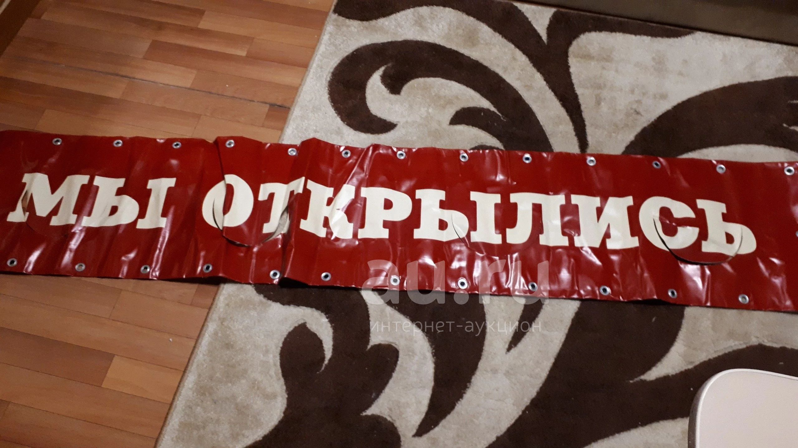 Баннерная растяжка "Мы открылись" (200 см на 40 см). Почти новая.