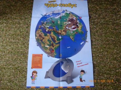 Надувной глобус-мяч с политической картой мира. Все названия на английском языке. Диаметр в надутом состоянии - 45 см. Может использоваться как обычный пляжный мяч для игр типа волейбола (на пляже, даче, поле), так и в целях обучения (в школе, на дополнительных занятиях) для изучения географии и английского языка. Кроме названий стран и городов на глобусе показаны часовые пояса, линия смены дат, меридианы и параллели (по 10 градусов), океанические течения. Так как сделан из прозрачной ПВХ-плёнки - с лёгкостью можно определить антиподов