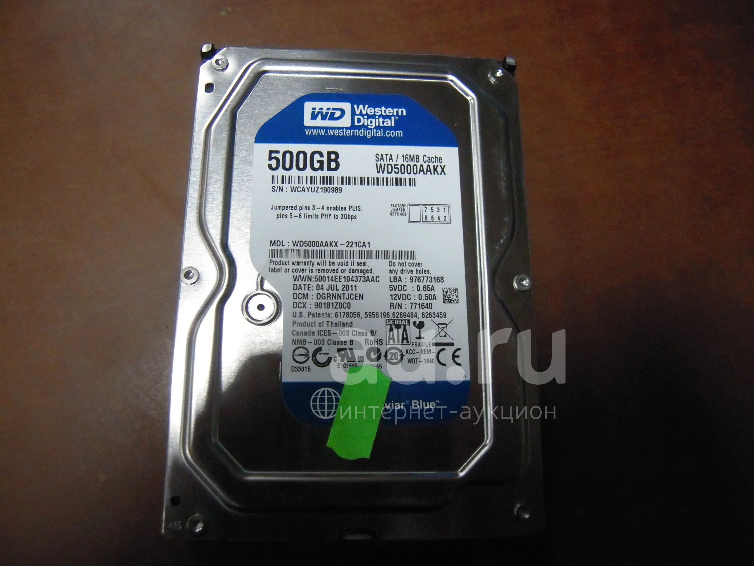 HDD жесткий диск для компьютера WD 500GB (WD5000AAKX) Sata 3.5" Весь исправен (s/n 0989)