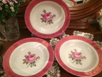 Четыре большие тарелки под второе, из большого столового сервиза "Желтая роза". Фарфор. Пр-во ГДР. KAHLA — фарфоровая посуда настоящего немецкого качества, которая имеет 160-летнюю историю. С рубля!