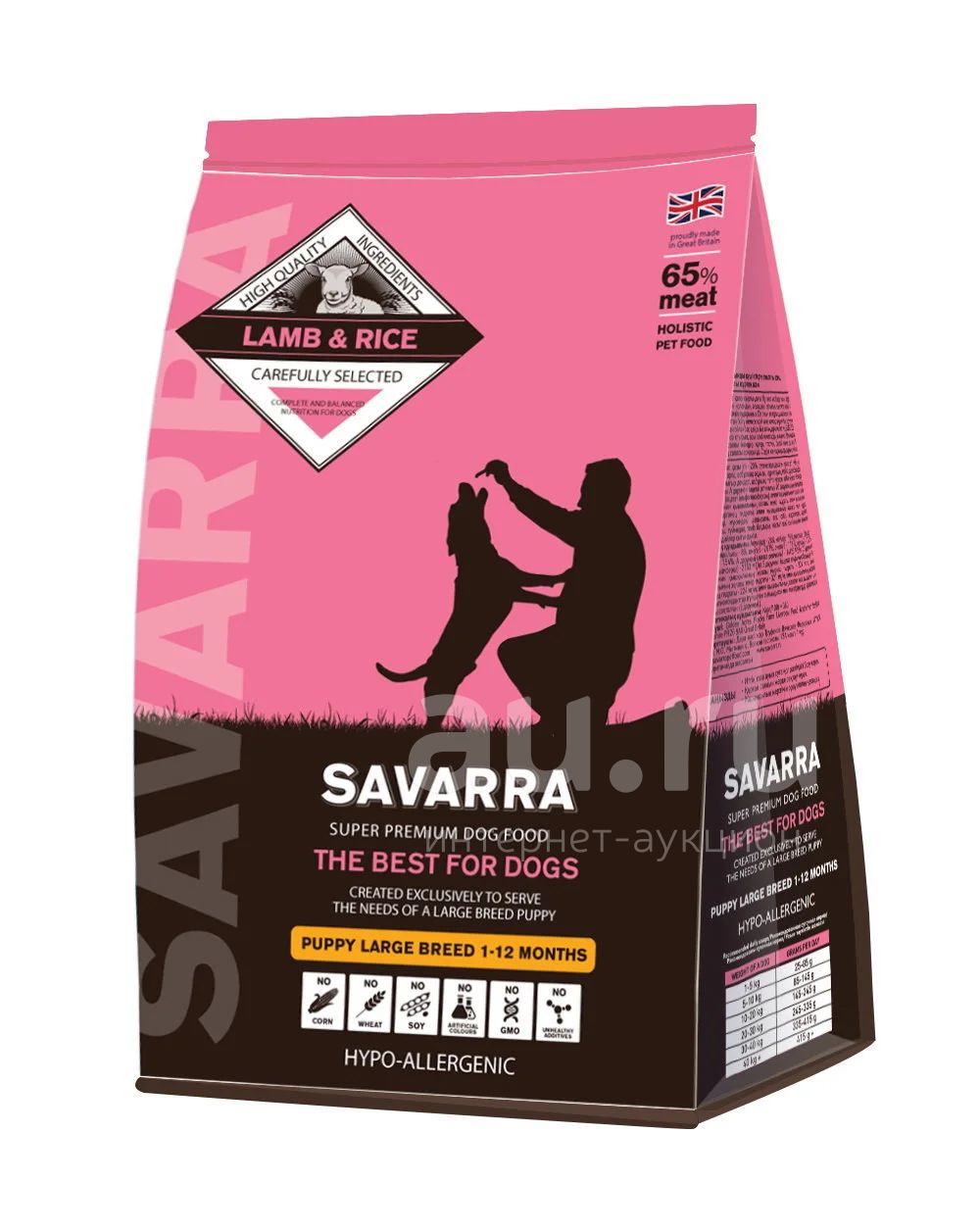 (Савара) Ягненок/Рис 12кг сухой корм для щенков крупных пород