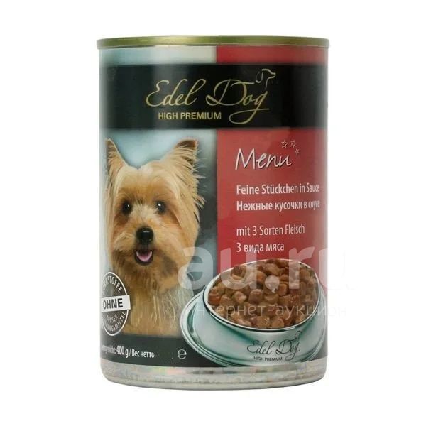 (Эдель Дог) 3 вида мяса 1200г конс корм для собак нежные кусочки в соусе
