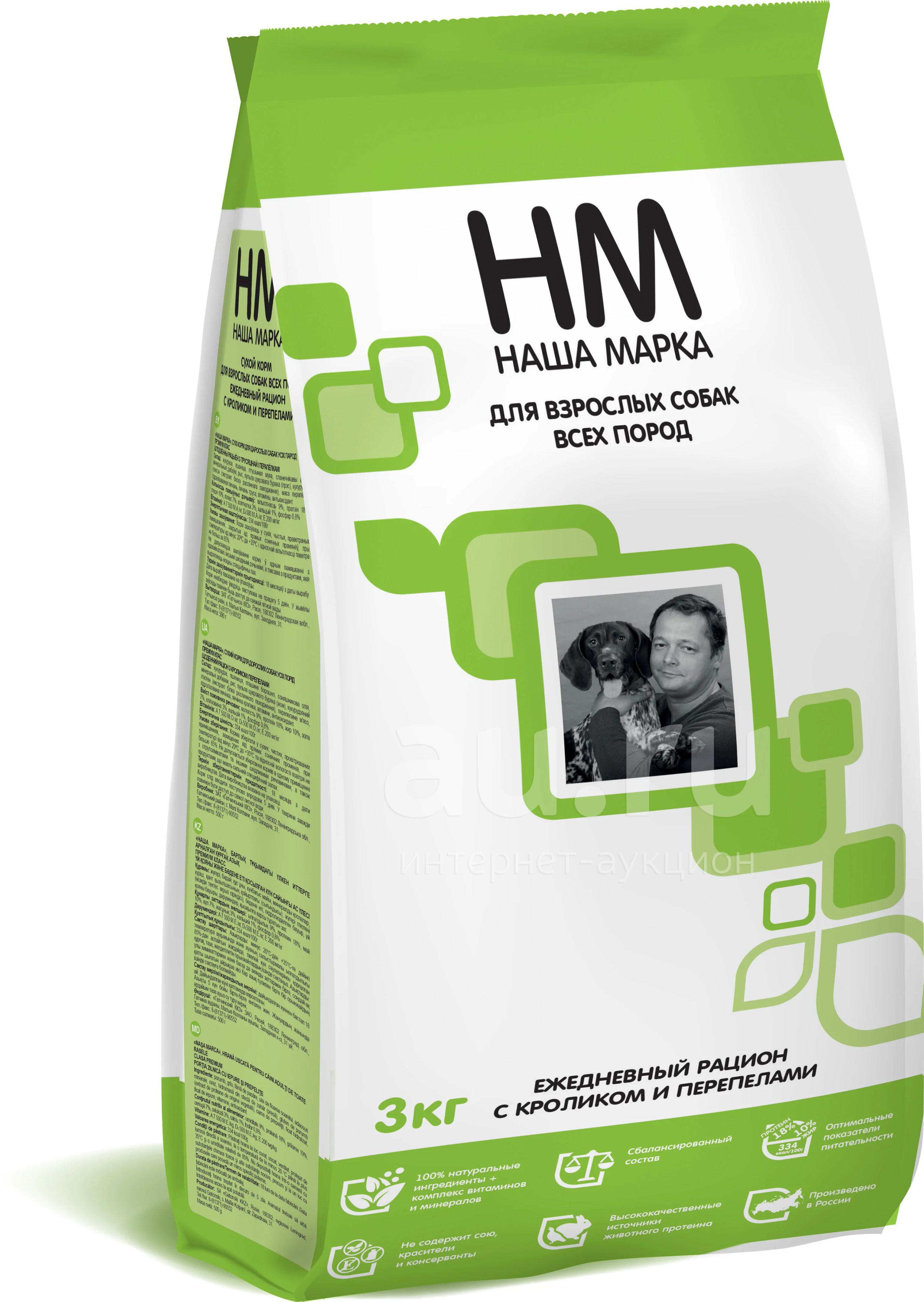 Кролик/Перепелка 3кг сухой корм для собак всех пород