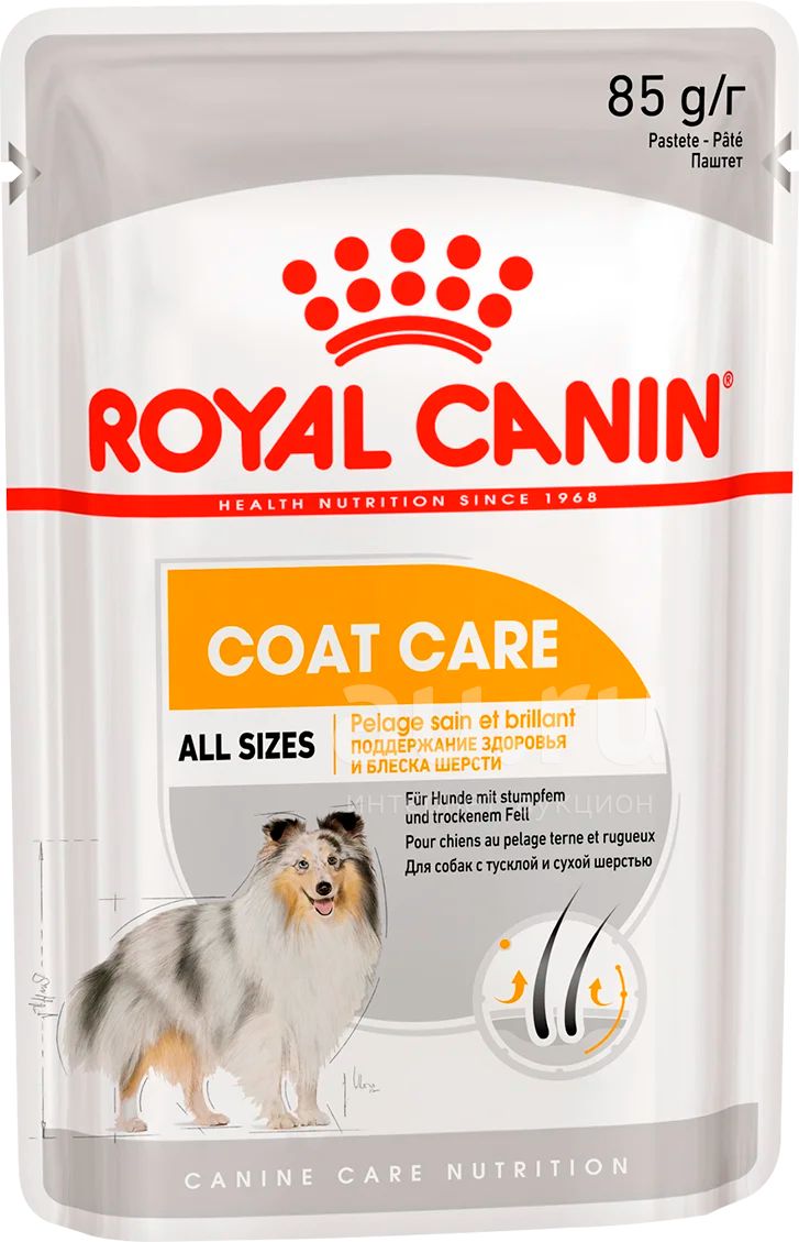 (Роял Канин) Coat Care 85г пауч корм для собак с проблемами шерсти паштет