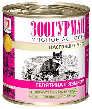 Телятина/Язык 250гр ж/б корм для кошек Мясное ассорти