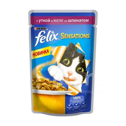 (Феликс) Утка/Шпинат 85г влажный корм для кошек Sensations