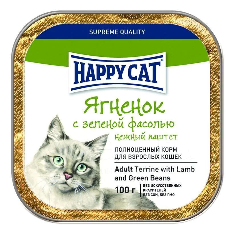 Паштет (Хэппи Кэт) Ягненок с зеленой фасолью 100г ламистер корм для кошек