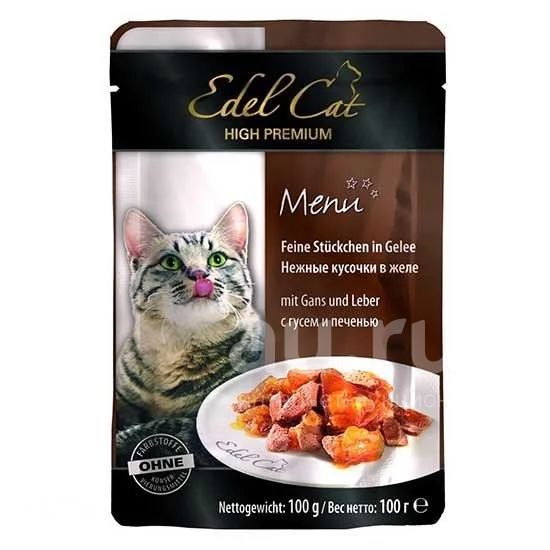 (Эдель Кэт) Гусь/Печень 100г нежные кусочки в желе влажный корм для кошек