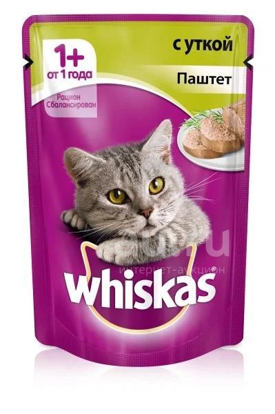 Аппетитный паштет с уткой подарит Вашей любимице настоящее удовольствие. Рацион Whiskas® содержит все необходимое, чтобы еда Вашей кошки была не только вкусной, но и полезной.