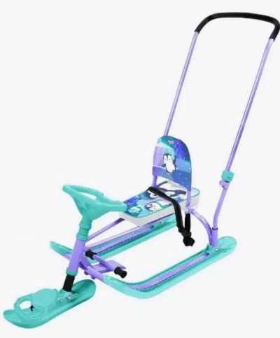 По факту цвет красно-белый, состояние отл. Со спинкой и ремнем безопасности. Ручка, около 3 м длина верёвки, амортизатор спереди, использовался мало