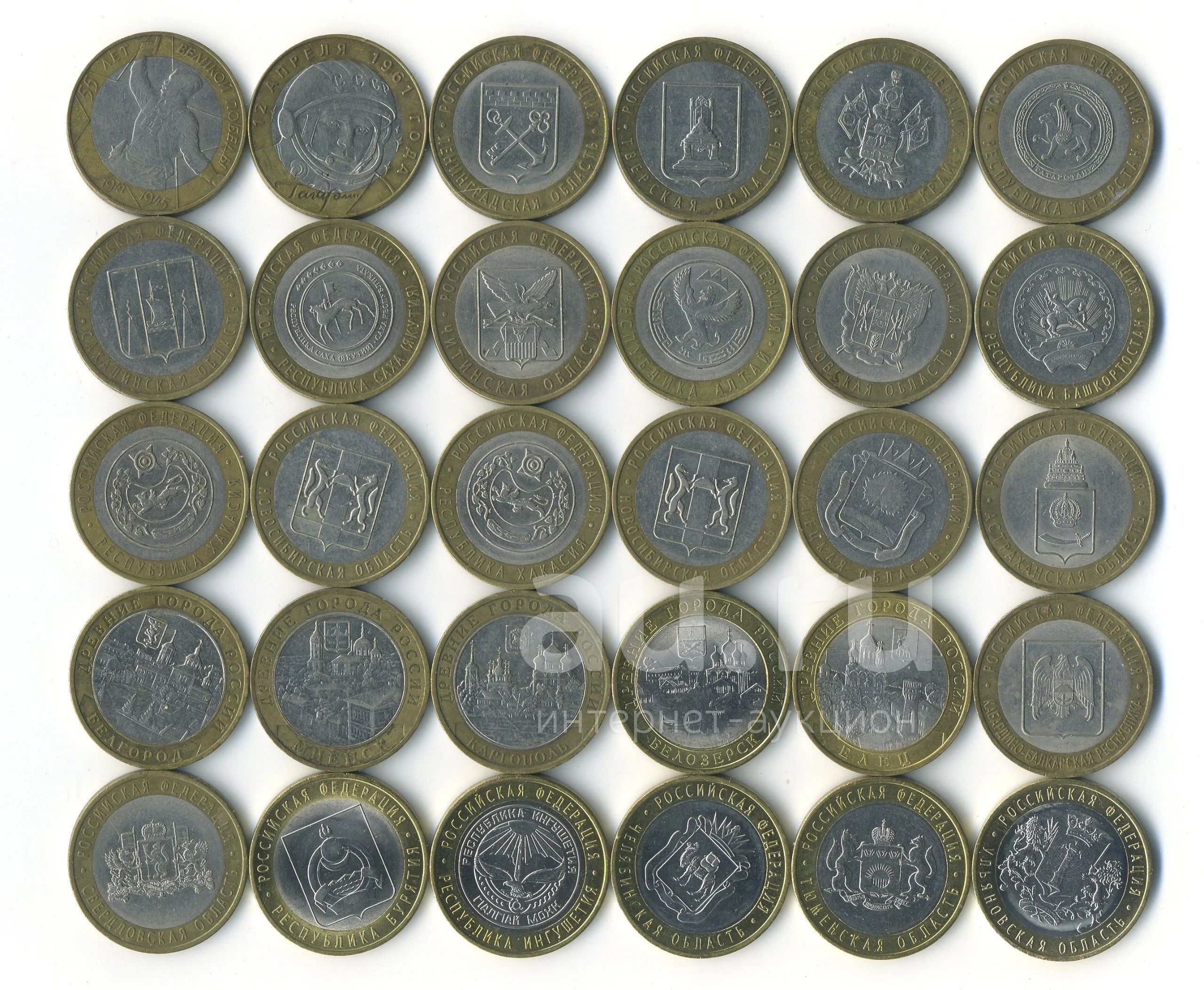 10 руб. города, даты, области 30 монет