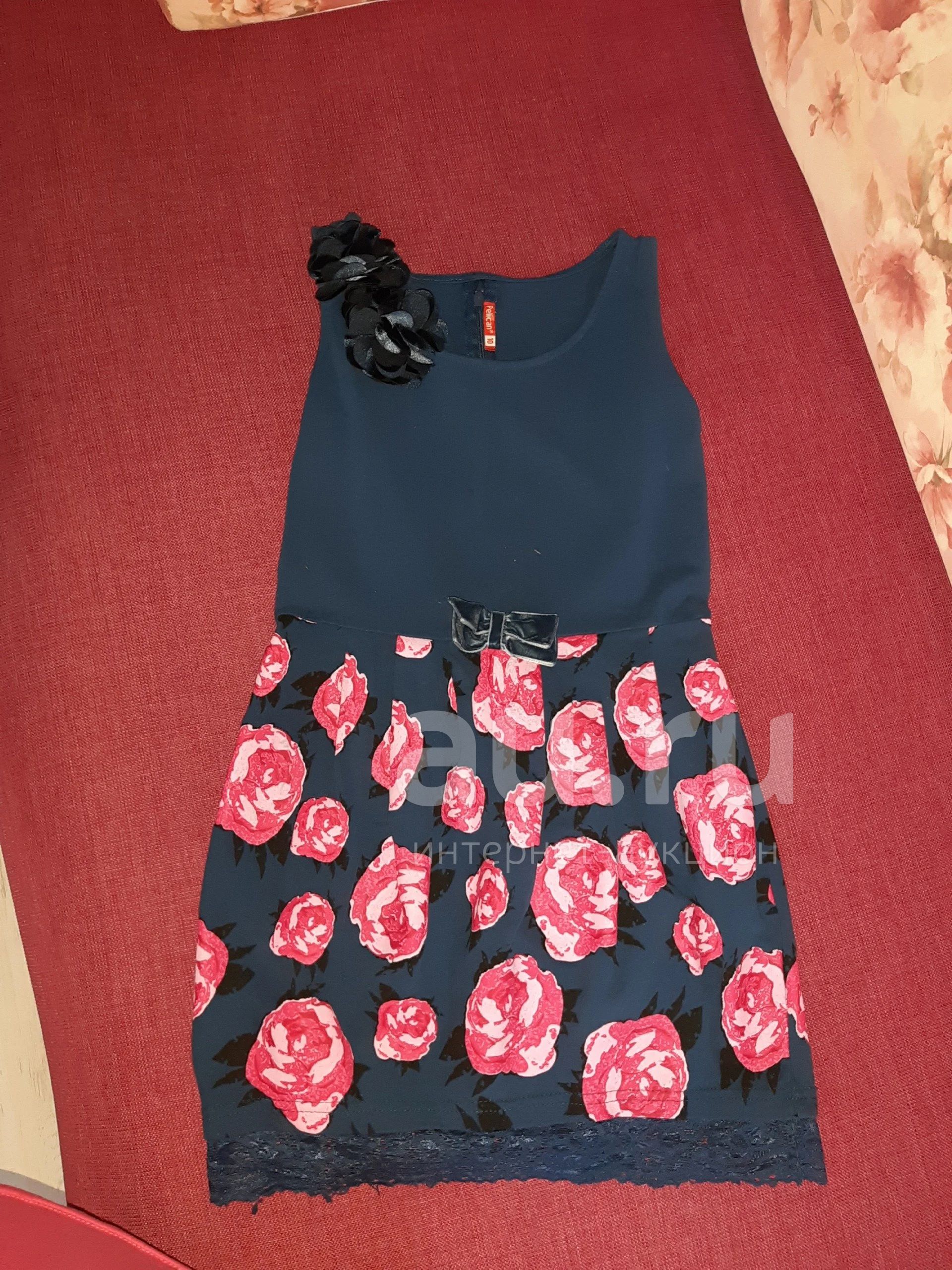 Платье темно синее с розами Пеликан на 122 -134 см с Рубля