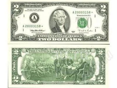 Описание: купюра 2 доллара сша: «. Самая эксклюзивная и красивая купюра мира лицевая сторона — портрет т. Джефферсона оборотная сторона — репродукция картины д. Трамбалла „подписание декларации о независимости 1776г.“ 2 доллара приносит денежный успех и удачу, будут замечательным подарком вам, вашим лучшим друзьям и партнерам по бизнесу, руководителю, людям у которы „все есть“, отличный подарок колекционерам».