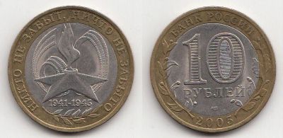 10 рублей 2005 СПМД. 60 лет победы в ВОВ 1941-1945гг.