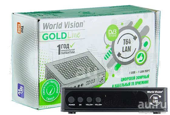 Новая комбинированная телеприставка World Vision T64LAN на высокопроизводительном процессоре для приема цифрового ТВ в стандартах эфирного DVB-T/T2 и кабельного DVB-C телевидения. Ловит 20 каналов в HD качестве. Также можно вам просматривать фильмы, фото, файлы записанного эфира, а также слушать музыку. Присутствует возможность подключения телеприставки к проводной сети через LAN разъем, что предоставит пользователю возможность доступа к приложениям Megogo, IVI RU, а также использовать встроенный локальный и облачный IPTV плеер с поддержкой плейлистов m3u.