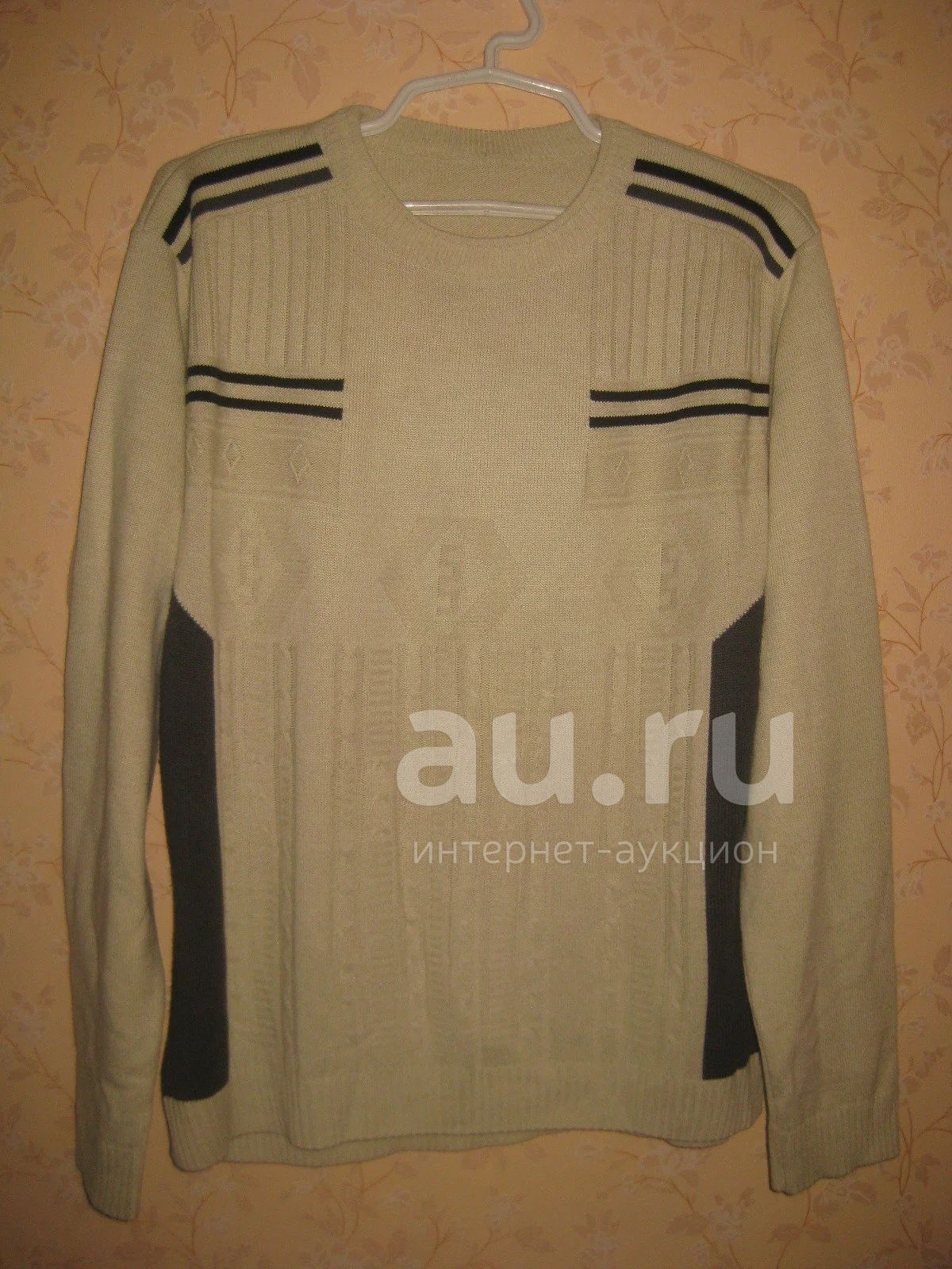 1) Свитер -- плотный трикотаж, красивая вязь 52 рост 170 см, полушерсть молочного цвета с черными полосками на плечах и по бокам, спинка гладкая. Длина по спине - 72 см, подмышками - 122 см, рукав - 68 см, плечи - 50 см. Состояние отличное -- как новый.