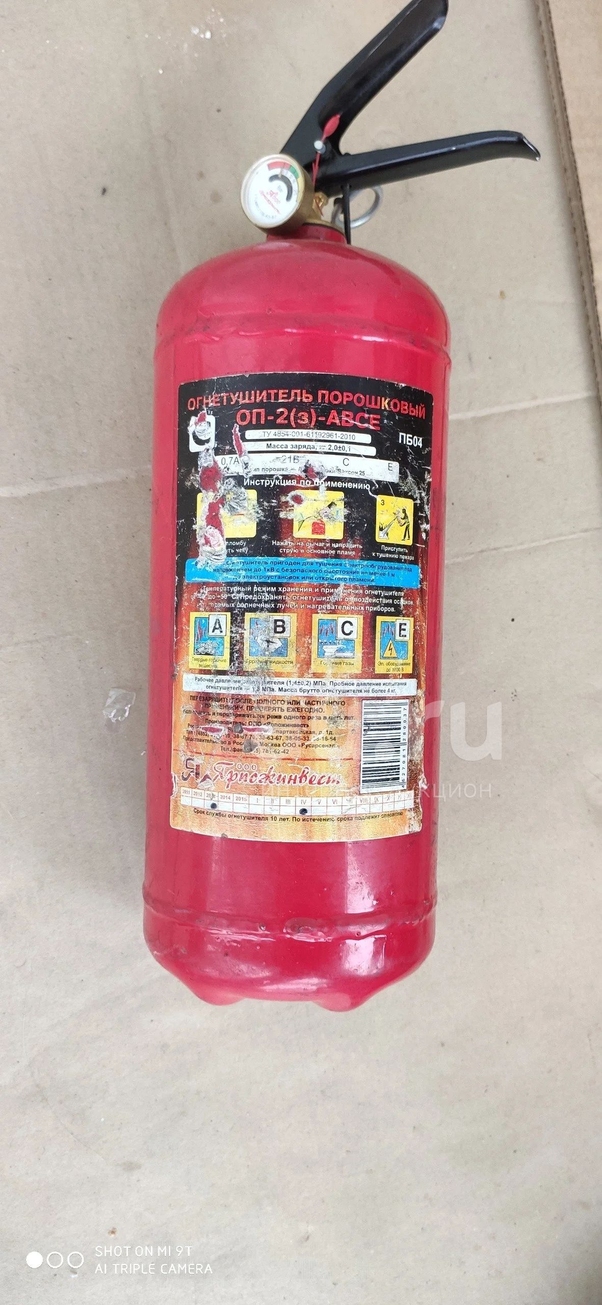 Огнетушитель порошковый пластик 2 литра Белоруссия ОП-2 в коробке
