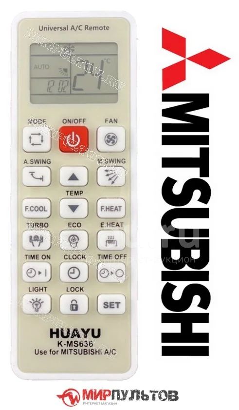 Пульт для кондиционеров Mitsubishi универсальный HUAYU K-MS636 является последней моделью с самой полной базой кодировок под различные модели кондиционеров и сплит систем данного производителя