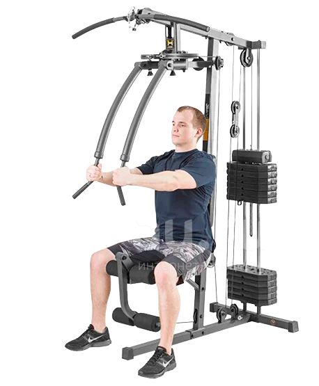 - Упражнения: жим от груди, баттерфляй, верхняя и нижняя тяги, тяга к себе стоя, отведение и приведение бедра, сгибание и разгибание ног