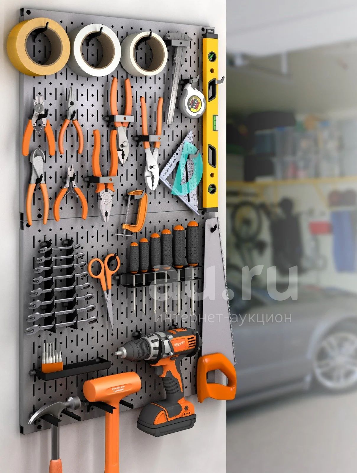 Перфопанель с 28 элементами навески для ручного и электроинструмента.