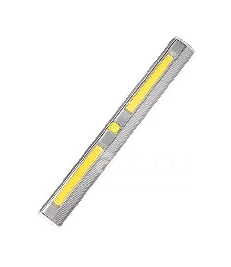Светодиодный фонарь-светильник, стилизованный под накладную световую панель. Хорошая автономность работы на батарейках, отсутствие необходимости прокладки проводов, многообразие способов фиксации позволяют использовать светильник во многих местах, где необходима подсветка, но нет стационарного освещения: в шкафах, в кладовках, в гардеробных, на кухне, в гаражах и т.п. Компактность, легкость, экономичность позволяют использовать универсальный светильник в качестве фонаря: дома, на даче, в палатке, в автомобиле и т.п. Прочный и легкий корпус из алюминиевого сплава. 2 экономичных СОВ светодиода 300 люмен. 2 режима работы (яркий/экономичный). 3 варианта крепления (отверстие под шуруп, магнитные держатели, лента липучка). Длина светильника 29 см. Характеристики. Материал: ABS-пластик, алюминий Вес: 122 г Тип батареи: 4 х ААA Источник света: 3Вт COB светодиод Тип упаковки: Блистер Габариты (ДхШхВ), мм: 282 x 26 х 14