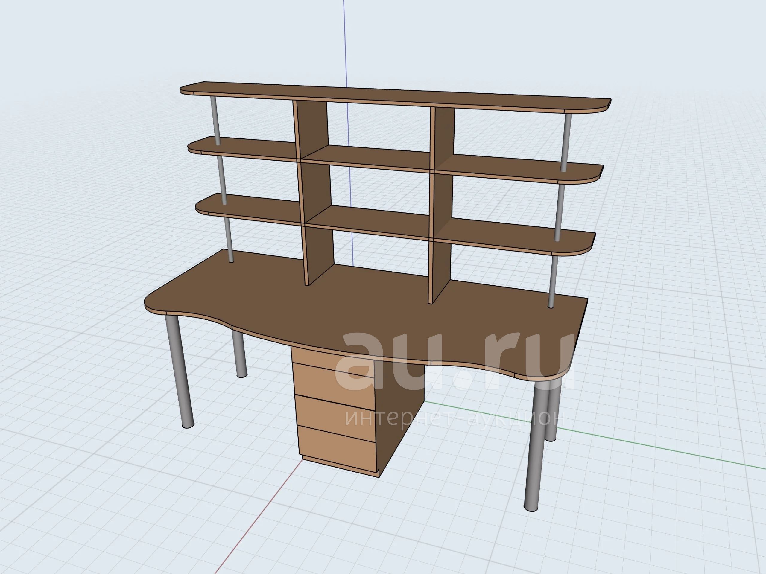 Компьютерно-письменный стол в разобранном виде. Конструкция как на 3д (сделано по обмерам), цвет как на фото. То, что комплектный и соберется — 100%, забыли сфотать до разборки. Повреждений поверхностей нет. Ящики периодически перекашиваются, нужна настройка механизмов. Перед отгрузкой запакую в стрейч-пленку.