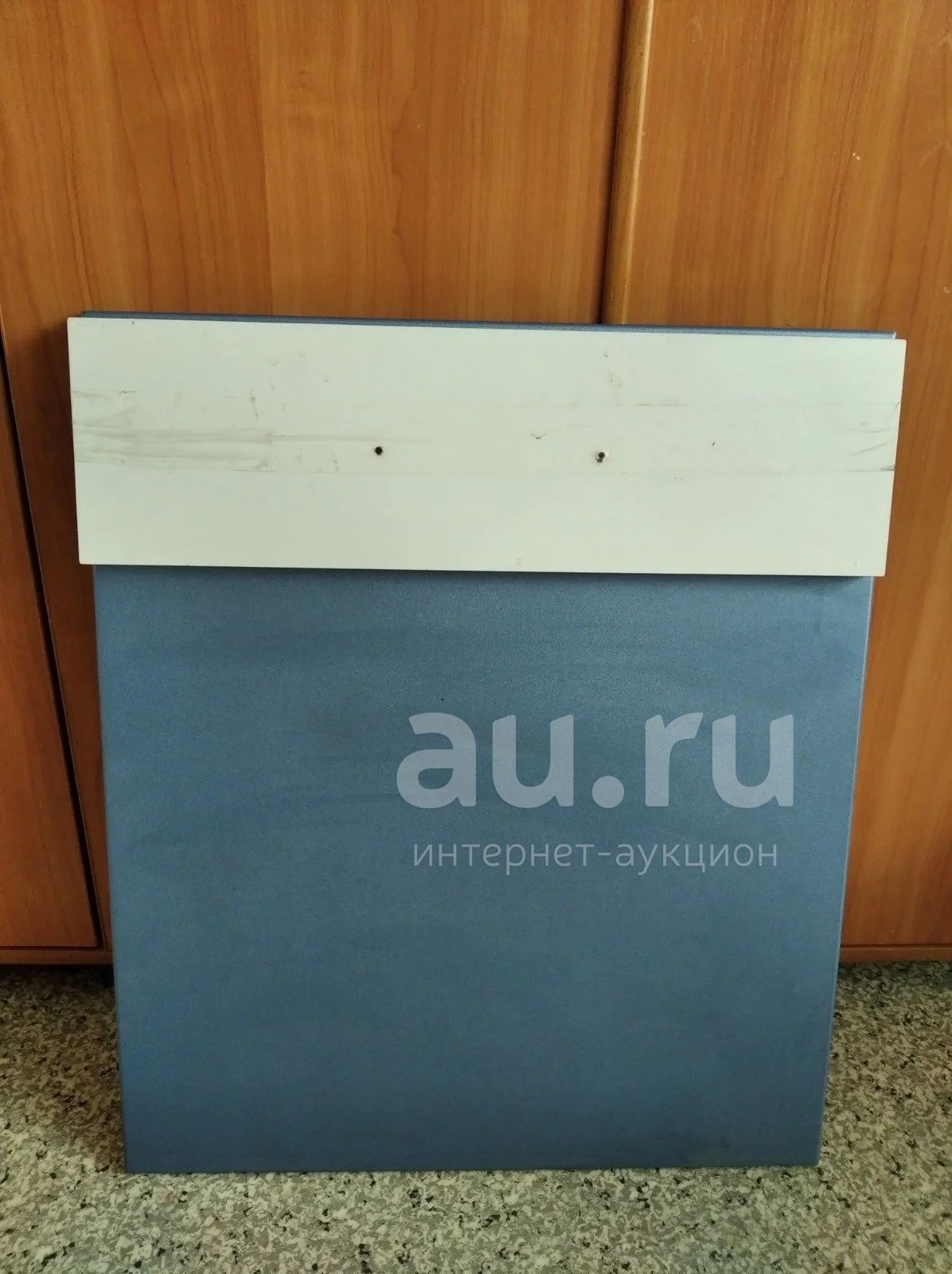Цвет синий металлик. Размер синей части 58*69. Белая 58*17 с отверстиями для ручки на 16 см